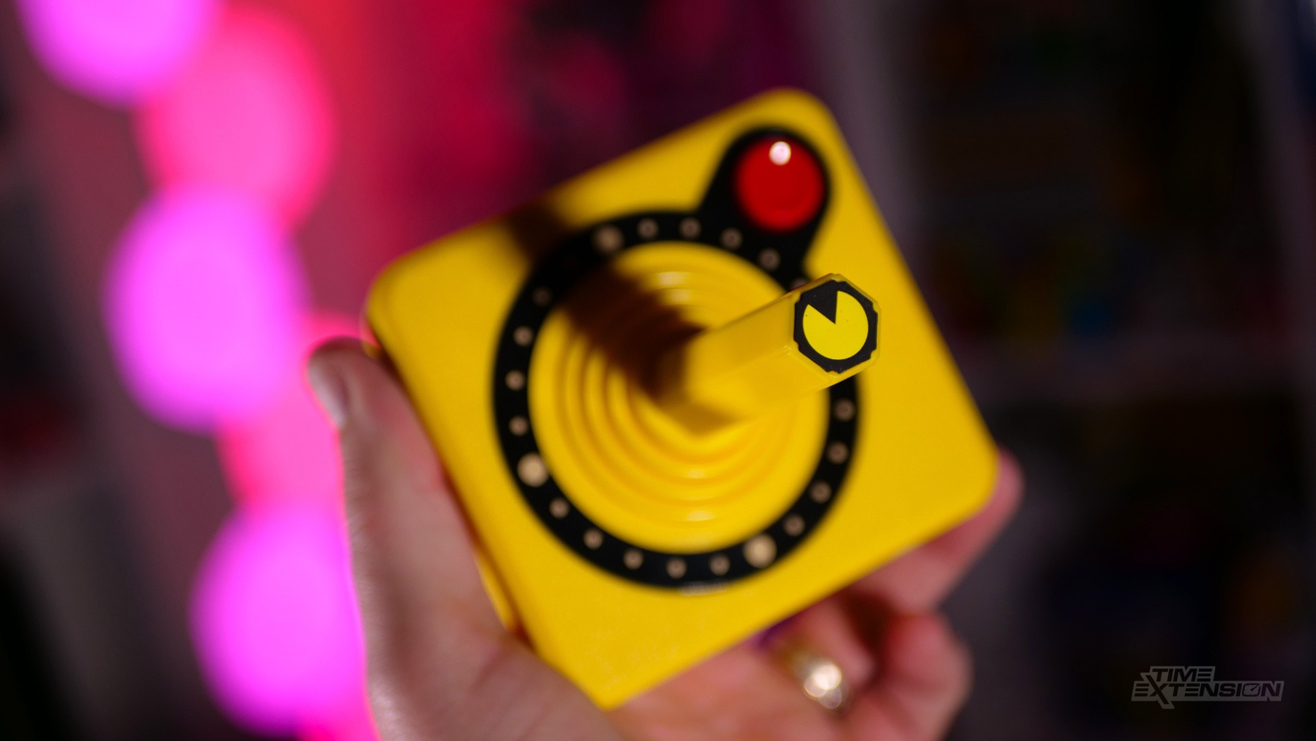 The bundled CX-40+ wireless controller is also the same one which shipped with the original 2600+, but with several visual differences. The top of the stick features a Pac-Man design, while the ring around the base of the stick is composed of dots and power pellets, both elements from the game itself. Atari and Plaion have released a series of sticks matching the colours of the Ghost Gang, but sadly, only one is included in this package – that means you're going to have to spend a little more to play two-player games, or use a 9-pin D-connector compatible controller.