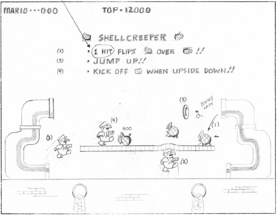 "You'll see in Mario Brothers that there's what’s called an “attract mode” that cycles before coins are inserted. It demonstrates a how-to-play mode and shows some of the higher levels in the game. My design philosophy always held to the old adage, 'easy to learn, hard to master.'"
