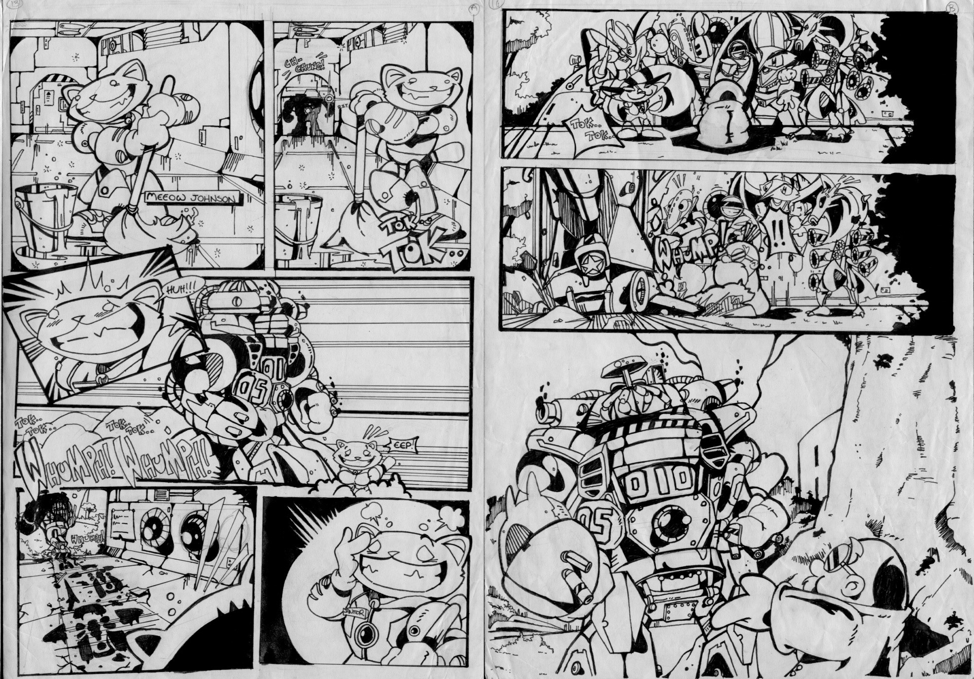 Webb shared some of his preliminary artwork, including the rough pencil sketch for Meeow Johnson, through to the digital line version, a prototype card design, and then the final version. He also revealed in our Q&A that almost all the character designs are actually from a Dreamcast game that was never finished, also providing a comic from that.