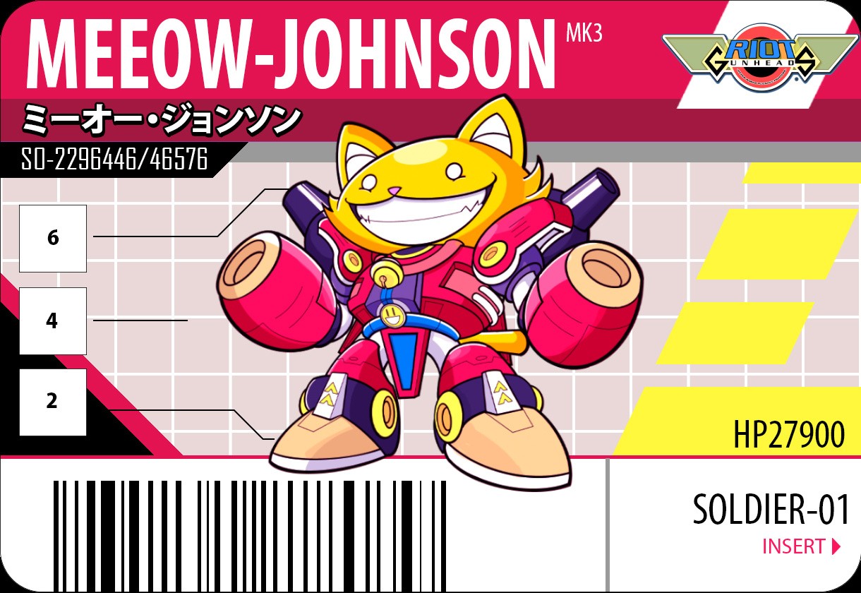 WEBB: Yeah, good spot! The translations were originally just done phonetically, so originally it was "Meeow" Johnson, but Tony was in contact with a great translator that he used for translating manuals, so we ran them by him and he provided much more accurate translations - hence the "Nyaa" translation, and so on. I've sent a quick example of the original version, so you can see the change. Nice small tid-bit there!