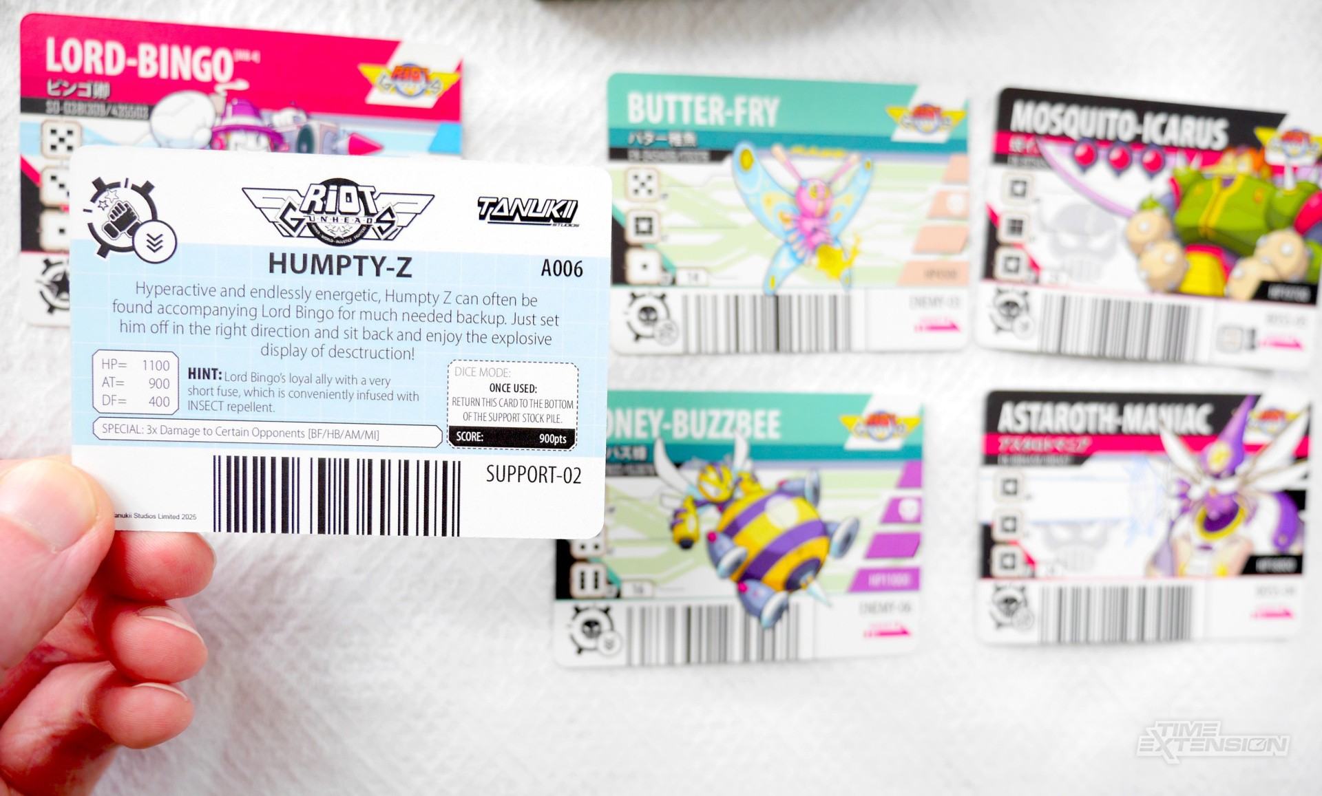 To aid the player, we've added hints in the descriptions on the back of each card. For example, some of the enemies have insect-like appearances, with Humpty Z's description mentioning "INSECT repellent". This aspect, present in the coding of the Barcode Battler since its release in the 1990s, went completely unmentioned in the localised manuals.